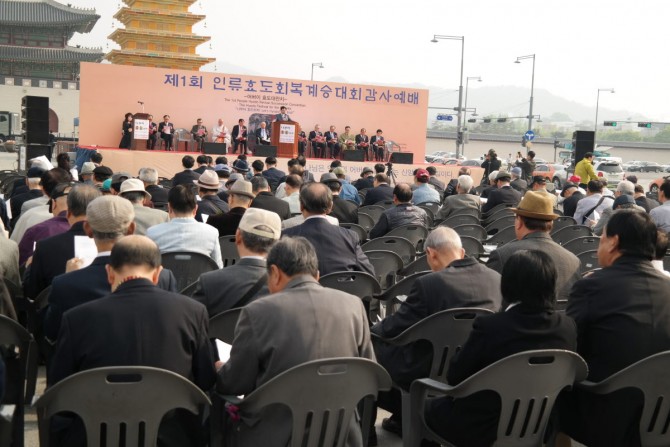 어버이날을 맞아 효 전통을 회복해 전 세계에 ‘효 한류’를 전하자는 ‘제1회 인류효도회복계승대회’가 누가선교회 · 한국문화재진흥원 · 세계한인재단·한국기독교원로목사회 · 한국직장선교연합회 주최로 8일 서울 광화문광장에서 진행됐다.