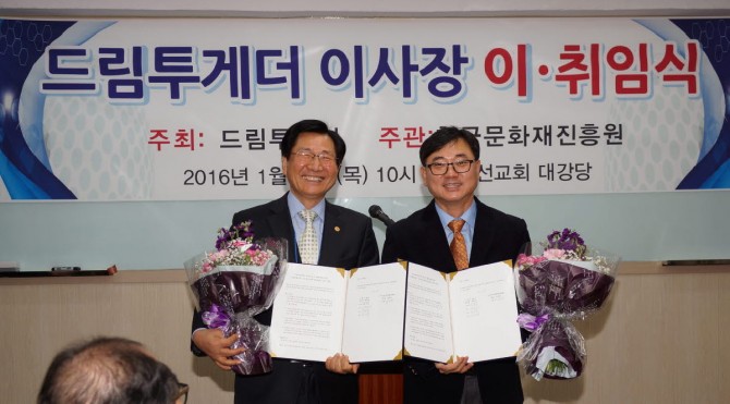 2016년 1월 14일 사)누가선교회와 한국문화재진흥원을 이끌며 국내외선교사업을 하고 있는 김성만 대표이사장의 드림투게더 이사장 취임식이 있었다.
