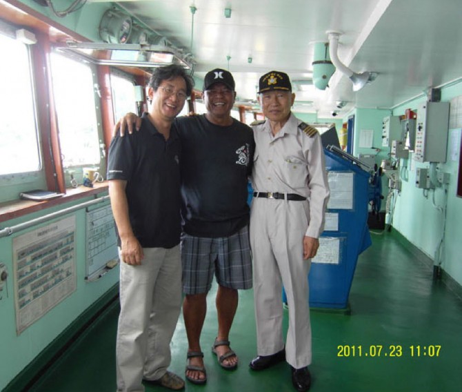 제복을 입고 있는 분이 한나2호를 지휘하고 있는 박인석 선장이다.