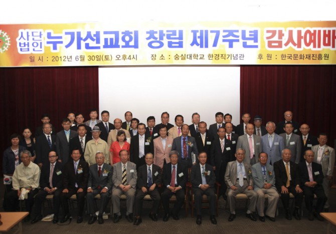 누가선교회는 2012년 6월 30일 숭실대 한경직기념관에서 제7주년 감사예배를 드렸다. 인도 심재선 목사(본회이사 희락교회) 대표기도 주대준 부총장(카이스트대학교 본회이사) 설교 “어느 것이 쉽겠느냐?” 임성택 총장(그리스도대학교 본회이사) 특별기도 최부수 목사(기아대책기구 부회장 본회이사) 축도 김영백 목사(한국기독원로목사회 회장) 감사예배를 드렸다. 제2부 순서로는 김성수 이사(고신대학교 총장), 김한경 이사(송곡고등학교 교장) 신민규 이사(나사렛대학교 총장), 이상철 이사(순복음경동교회 목사),한창영 이사(동계올림픽 대표회장), 이병화 이사(하나대투증권 고문) 신임이사패 증정식이 있었다. 축사는 신민규 총장(나사렛대학교 본회이사) 격려사 최윤권 목사(서울기독대 설립자 본회고문) 특강 “무너진 성벽을 재건하는 21세기 지도자 (이사야 58:12)” 주제로 김영길 총장(한동대학교 본회이사)이 강연했다. 교제의 시간에는 전 KBS 코미디언 서원섭 홍보이사가 나와 재치있는 인사말을 전했다.