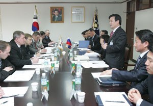 대통령 경호차장 시절 러시아 실무진과의 통신 회담.