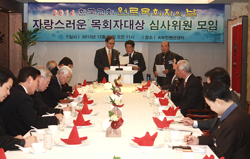 1월 10일 ‘한국교회 원로목회자의 날’을 맞아 시상식을 갖는 ‘자랑스러운 원로목회자 대상’과 관련, 수상자들을 선정하는 심사위원 준비모임이 24일 서울 종로구 하림각에서 열려 열띤 토론을 벌였다.